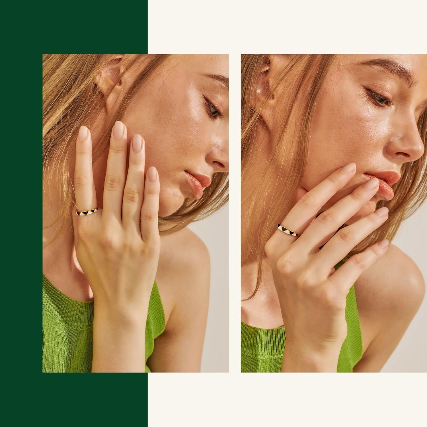 My wife loves this ring. She’s always loved the checkered pattern for some reason. She wears it daily (the ring, not the checkered pattern). She said that the ring is comfortable and you’ll forget that you’re wearing it. Also, sizing is correct so it’s true to size. They’re playing seems to be on really well as it has not rubbed off yet. Considering she’s had the ring for months now and wears it daily, I’d say it was done really well.10/10. Recommend!