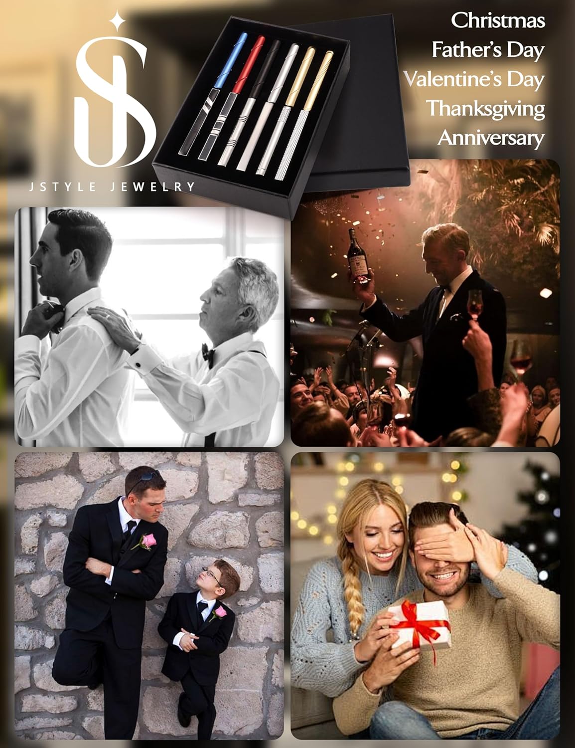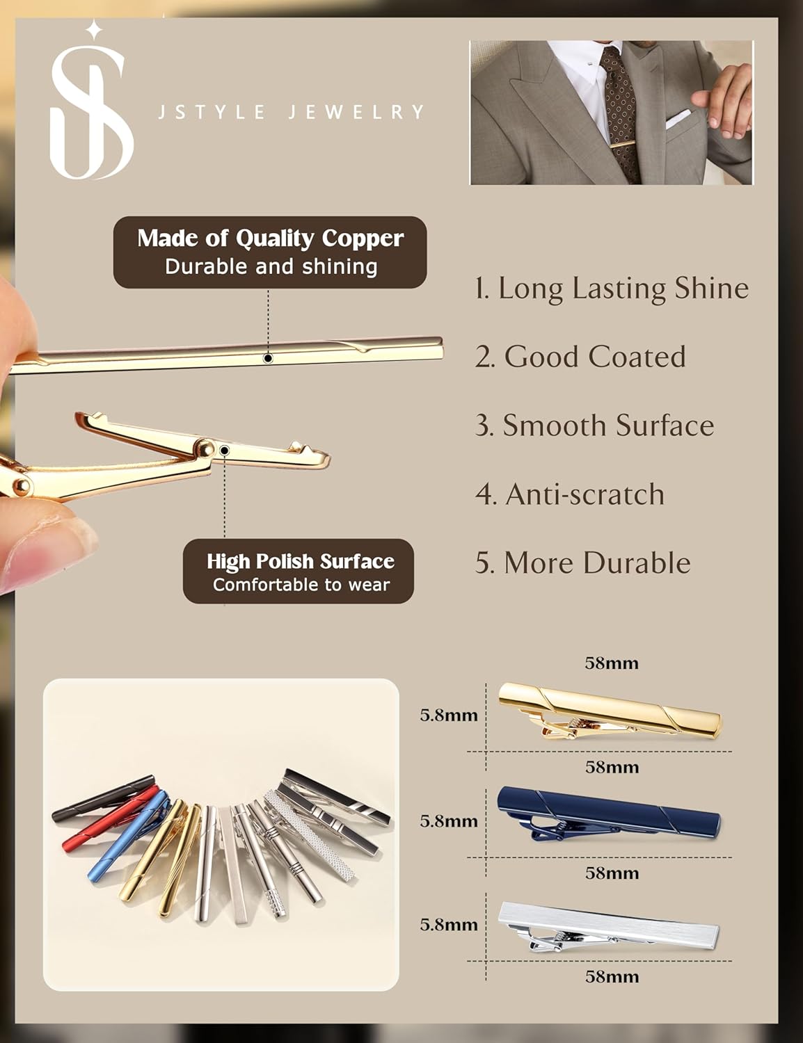 “Assorted Silver & Gold Tie Clips — Silent Power with a Polished Edge”Let’s not pretend—tie clips usually just sit there, clinging to your tie like an afterthought. But these? These are assorted silver and gold tie clips, and they don’t cling—they command. They’re not just accessories, they’re subtle statements of power, order, and ridiculously refined taste.From the first glance, it’s clear—these aren’t dollar-store clips that bend at the sight of a buffet. These are precision-forged, pocket-sized power moves. The silver ones? Cool, clean, executive calm. The gold? Bold, sharp, the kind of gleam that says, yes, I take my coffee black and my meetings seriously.Each clip is crafted with clean lines, smooth hinges, and a firm grip that says, “Your tie isn’t going anywhere, boss.” Seriously. These clips don’t slide around or fumble with your fabric—they lock in like they’ve got something to prove. And honestly, they do: professionalism, discipline, and immaculate taste, all in one barely noticeable flash of metal.The best part? Versatility. Wedding? Job interview? Mafia dinner? Doesn’t matter—these clips match every look and every mood. Need quiet confidence? Go silver. Want to let your inner legend shimmer? Gold’s got your back.And let’s talk function. These aren’t just pretty—they work. They keep your tie perfectly centered, prevent awkward flaps on windy days, and—bonus—they make you feel like a secret agent disguised as a gentleman. They’re minimalist elegance with maximum authority.Perfect as a gift too. Slide a few into a velvet box, and suddenly you’ve handed someone an entire style upgrade in three sleek bars of metal. It’s like saying, “Here, elevate your life.”Final verdict: 17/10. Sharp. Sophisticated. Unshakable. These silver and gold tie clips don’t just hold your tie—they hold your image together like the quiet hero of your wardrobe.