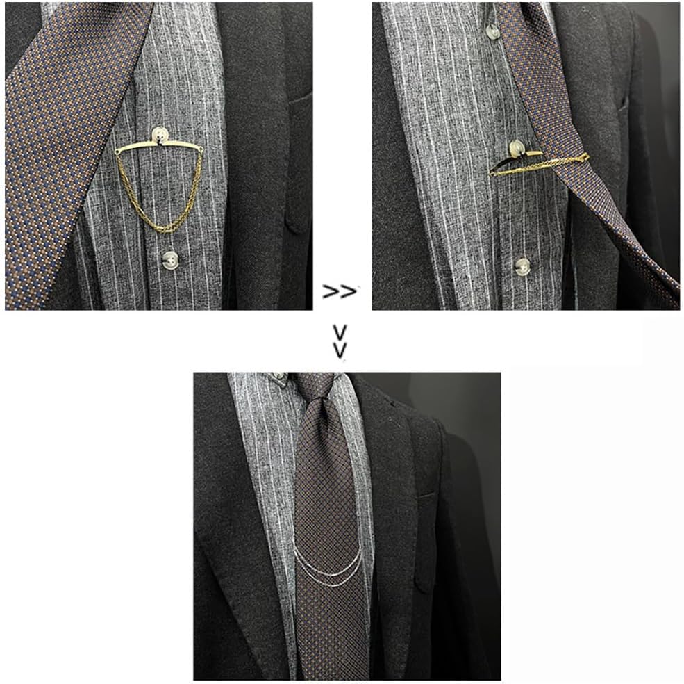 These tie chains are pretty much exactly what you think they are. If you need one of each color depending on what you need for a particular outfit, you can't beat the value for the money. The quality seems pretty good and I have not had an issue with durability yet.Depending on the tie, just move them a button higher or lower to make them fit so the bar doesn't show. As far as functionality goes, they do what they are supposed to do! The look is rather basic and understated and sometimes that's exactly what is called for.