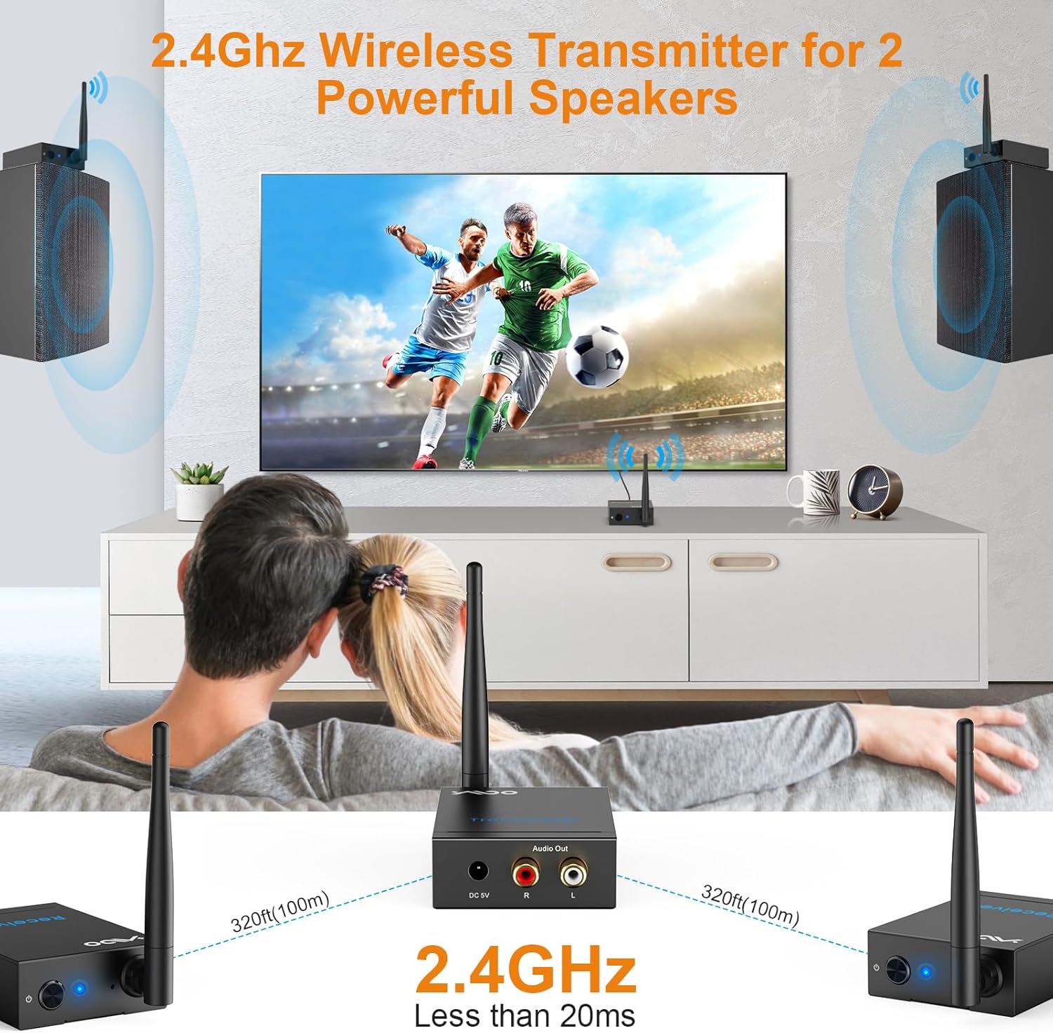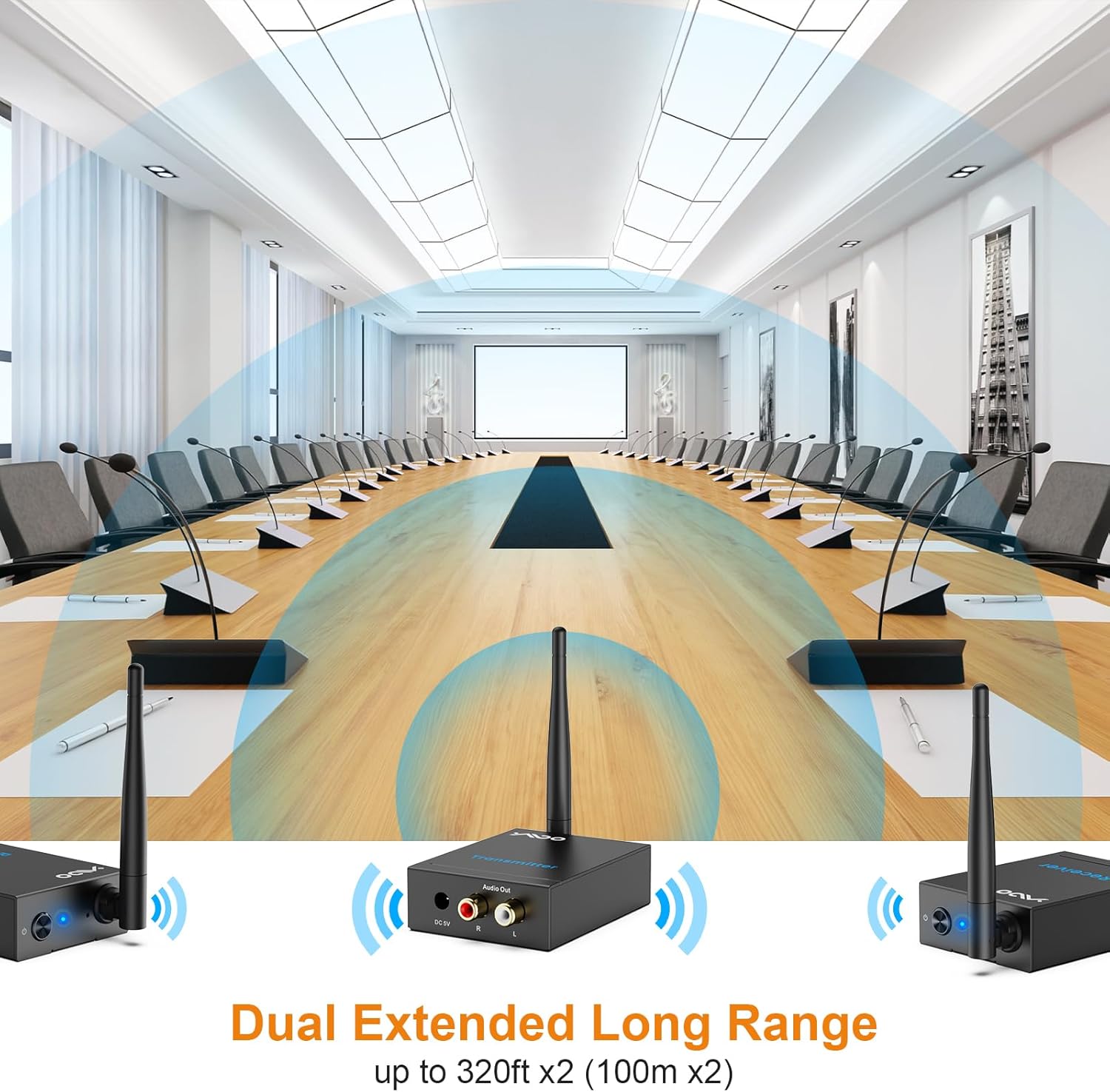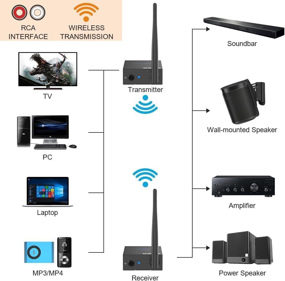 As a DJ I was looking for a solution to an issue I faced at a local venue. I throw theme parties monthly and they wanted me playing on the first floor and a VIP Lounge on the third floor. They wanted sound to be played from a sound system on the 3rd floor which that matched what I was playing on the 1st floor.My main concerns were1) Distance/cutting out2) Latency3) Sound quality of signalDistance:I can attest that I had no issue getting the signal from a Sub-Out on my mixer (a duplicate stream of audio that matches exactly what is playing over the main mix) to the transmitter and received flawlessly on the receiver upstairs. I ran a 1/4 in stereo cable to RCA audio on the YMOO wireless audio system. I did not use the cables that came with the system, I had my own. The connection was rock solid and I was assured it never disconnected, dropped, or stuttered throughout the entire 5 hour event.Latency:Even though the separate system was on a different floor I was concerned with latency for those that left the 3rd floor and walked to the 1st or vice versa and would hear a possible delay between the two songs playing. I can confirm there was next to no delay. The latency time is most definitely very very low and I have used this in a separate event where I have the additional sound system in the same room as reinforcement and it works flawlessly. I hope this continues!Sound Quality:For any sound nerds out there, I sent the signal from my Tascam Model 12 mixer to the YMOO and then the secondary sound system was an Evolve 50m speaker. I was afraid it may be tinny or thin sounding and lose some of the low end, but after testing the sound quality is even better than I expected. I tested with the same song I generally test my subwoofer on my main rig with and it sounded perfect.I cannot recommend this enough. I was looking at a system that was over $700 and gave this a shot hoping it would be good enough, and it was better than I could ask for. I would gladly have paid double what I paid for this device. Do not hesitate, this one is solid.