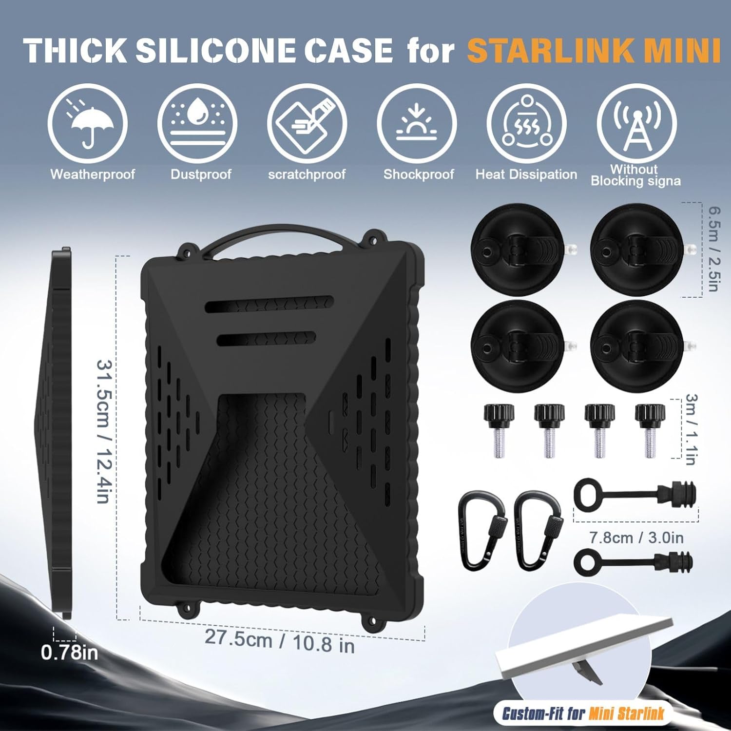 Basically exactly what I was looking for:Many of these covers are black and get very hot in the sun. This was white and honeycombed to handle heat better. Obviously a satellite dish is going to see sun. Why aren't most white?It fits the Starlink very well. The case fully overlaps the edges of the Starlink so no slipping out. I tried another cover where the bottom of the case kept popping up and wouldn't stay covering the bottom side of the Starlink.Perfectly compatible with the Peakdo Linkpower 1 that I bought for the mini. It is the perfect thickness that still let's the Peakdo battery lock into place.Comes with lots of attachments. I haven't used the suction cups for long periods but they seem a very reasonable build quality and the suction seemed very strong. I can't say if it would hold for long periods but I have no reason to believe it wouldn't from what I have seen.I love the design. The handle is perfect for carrying around and seems very unlikely to break/tear. The suction cups are removable and the holes for the suction cups don't add much surface area while also being surprisingly sturdy.If I had to think of ANY complaint. There was a slight ripple through the center of the middle of the face of the cover. Meaning it wasn't a perfectly snug fit on the thinner face of the cover. That said, it was very subtle and has only gotten less noticeable as time goes by. It is nearly imperceivable now. I think given the nature of silicone it might have a little bend after shipping and with never being used. It may just need time to become perfectly form fitting. Perhaps even a quick blow dry would have solved it instantly. I only even mention it because the other type of over cover I tried did not have this minor ripple even straight from the bag.Price was very reasonable. When I ordered this, it was maybe only like $5 to at most $10 more expensive than all the other Starlink covers. If thats is the case when you are searching... Then search no more. This works as advertised and seems perfectly reasonable quality for the price. Worth a reasonable premium over others.