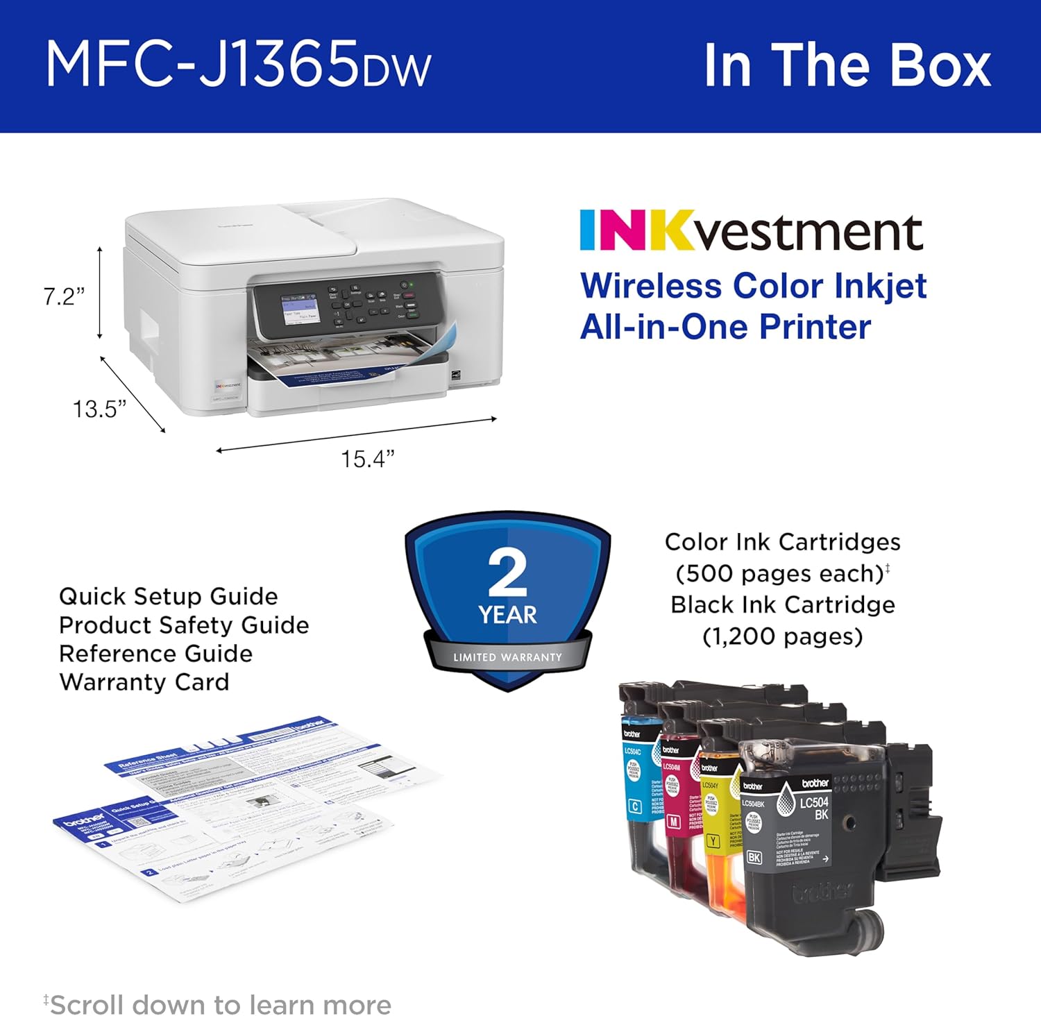 I bought this Brother Printer after another Brand updated and then would not recognize the INK Cartridge. I was really aggravated, it was 2 months old. This one said it came with a years supply of INK. Well I'm here to say I've been really impressed with the quality of the printer. It's just now running low on INK and we've done more printing than the average household( way More). We've had this for about 8 months and the cost of new ink is not bad. It prints from our phone, iPad , as well as the PC. It connects with the network easily, setup was a breeze, and no bigger than most other home printers. And the paper cartridge holds about half a ream of paper, meaning you don't have to be refilling it often. In short, I'm convinced this is the best home printer we've ever bought.UPDATE: it's Now September 9th 2025, we've had this printer almost a year, WE PRINT A LOT. it said we needed ink about a month and a half back, I kept printing till it stopped today. I'm really impressed. we've gone through a couple reems of paper and it just kept going. until the tanks were completely empty! Absolutely the BEST printer I've ever owned!