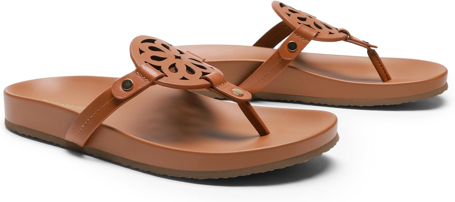 These sandals are comfortable and have just the right amount of decoration to make an outfit look casual chic.I have multiple Dream Pairs boots in my closet, which I like, but I hadn't tried their sandals before. I am a solid size 10. Not narrow or wide, exactly a 10. In their boots I sized up, which I've never had to do, but they were tight around only my toes. Sandals are more forgiving so I decided to order my consistent and average 10. I'm glad I did. These sandals had more than enough room. If you're between sizes I'd recommend sizing down. These are also comfortable enough for a wider foot I think. There's plenty of room and cushion for any foot shapes and sizes. Your toes won't hang over either. I'd say these are actually long for the size.I usually don't wear thong style sandals but I liked the versatility of these. You can make a basic outfit a little more polished but they're also not so loud that they compete with your patterned maxi dresses. The gold accents are an understated way to pull your look together effortlessly.They cradle your foot well and the cushion adds just enough bounce that you can shop, lunch and do errands without discomfort, especially between your toe, which was my main concern. For an ankle strap loyalist, that's saying something. Big bonus points for the added bottom texture for traction!If you want comfort and an easy style without the fuss, this sandal definitely works.