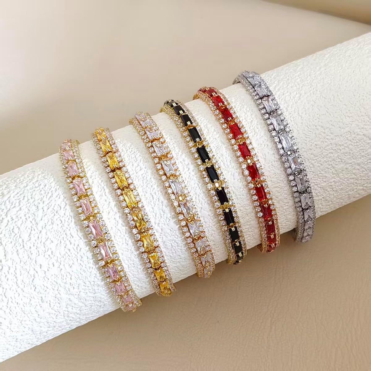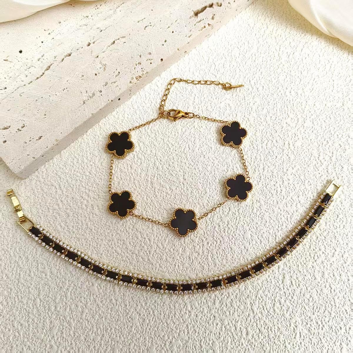 finally - actual non-tarnish jewelry! i haven't taken these off since i received them (sleeping, working, showers, everything) and they look exactly the same and my wrist isn't green! look exactly as pictured and the claw clasp bracelet is adjustable, the gemstone one isn't and fits a little tighter on me but by no means is it uncomfortable. worth the money and will buy more probably haha
